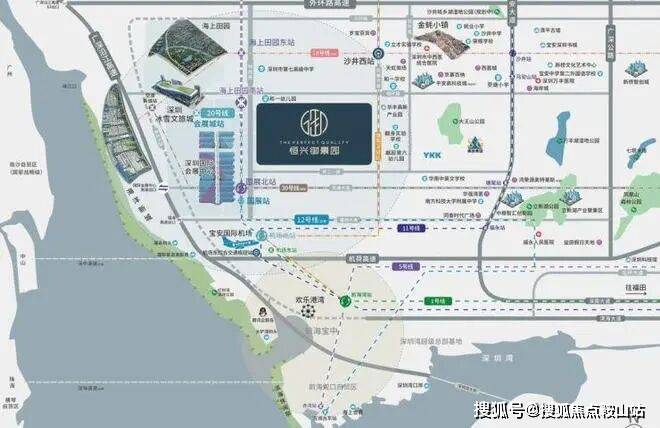 五维立体交通,举步湾区• 紧靠穗莞深城轨—沙井西站,30分钟连通各大城市中心;距离12号线(在建)海上田园南站约700米(预计2022年底开通),未来交通更加便捷;项目出发10分钟上沿江高速、外环高速,30分钟内通达宝安中心、南山中心,快速畅享全城。