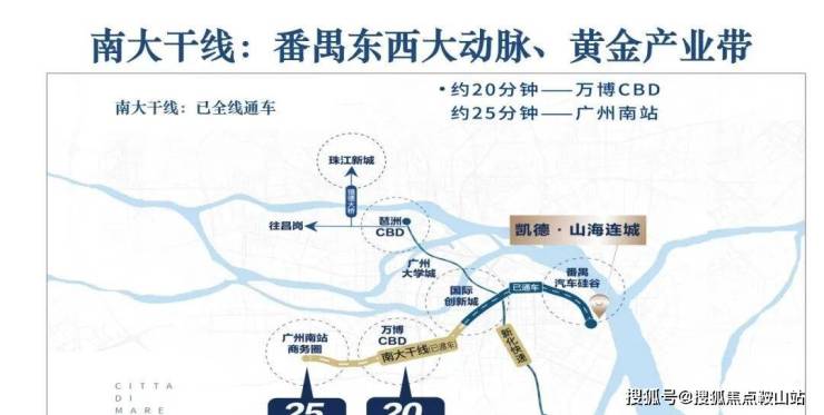 好处是项目自驾还算方便,目前南大干线已经全线开通,去往南站、万博、大学城、创新湾等地都很快,比如去往琶洲,仅仅26分钟的车程时间