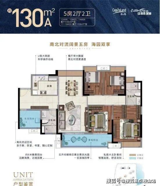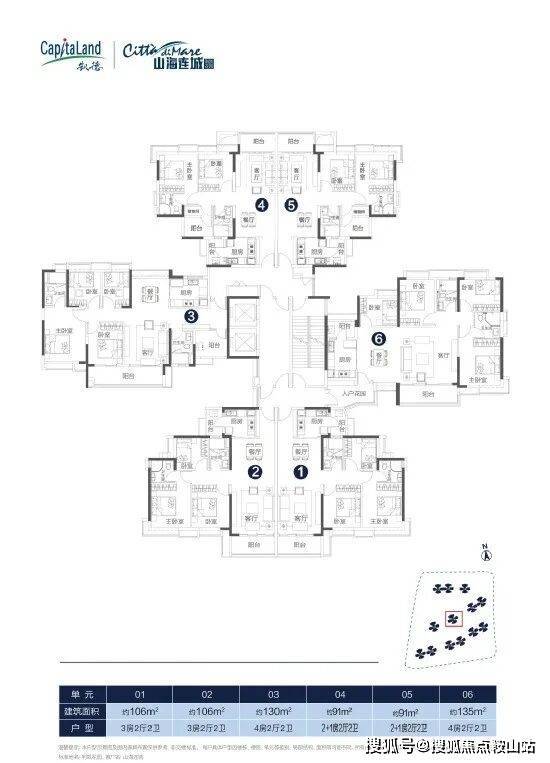 项目一共有5个面积段,分别是85平三房两厅一卫,91/106平三房两厅两卫,130平A户型五房两厅两卫,130平B和135平户型四房两厅两卫。