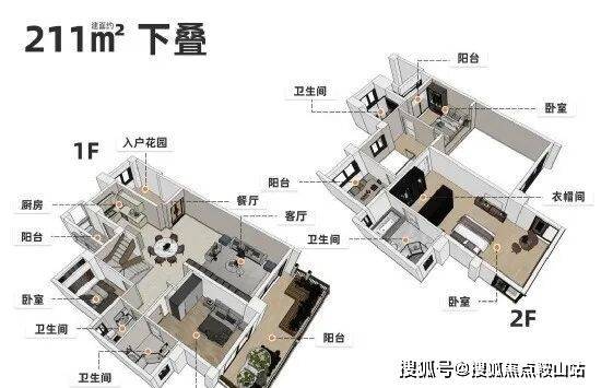 下叠户型建面约211㎡,但注意了,它自带有超大花园,面积媲美一个小户型!