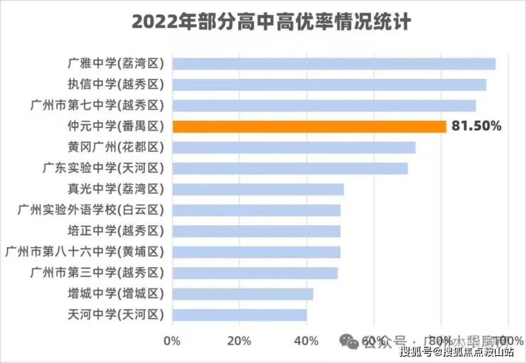 聚焦2022年最新数据,仲元中学的高优率已经达到了81.5%,600分以上考生接近200人,遥遥领先于其他常出现在广州家长口中的学校。