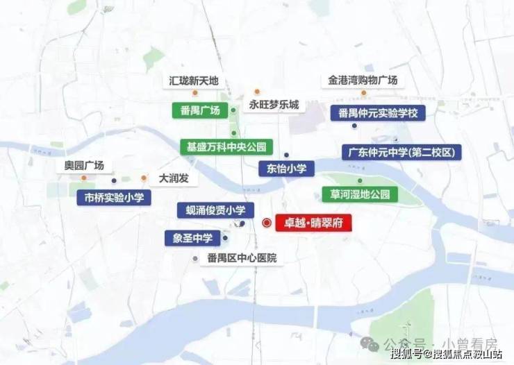 位于番禺区桥南板块,紧邻市桥河6公里精英河岸线,坐拥草河湿地公园、星海公园等四大滨水生态带。