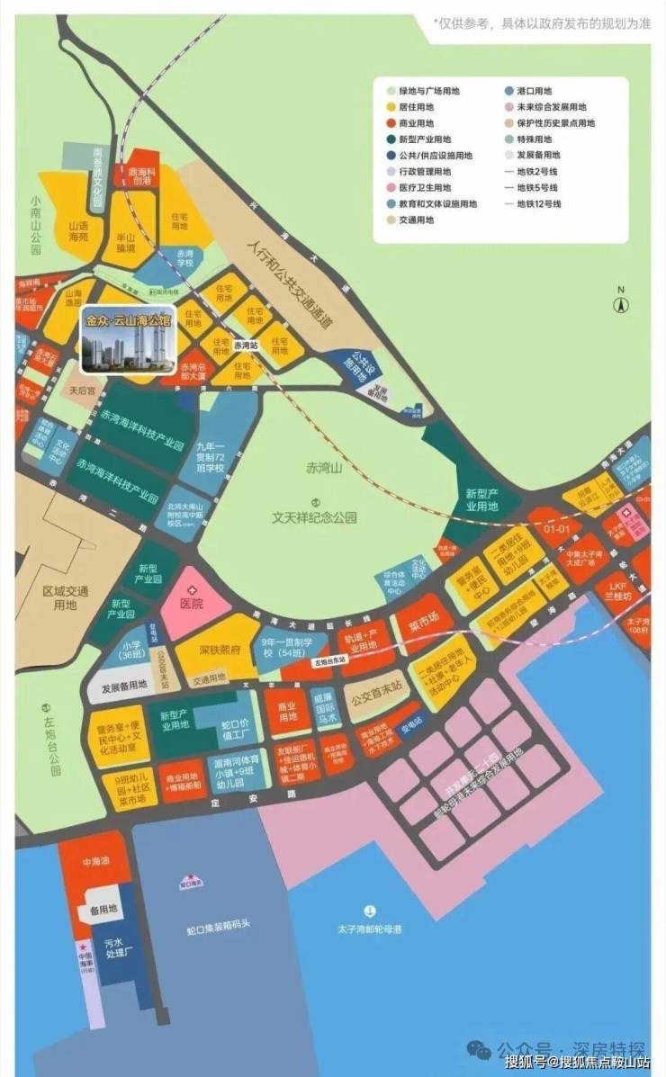 金众云山海公馆,位于南山区赤湾片区港航路与赤湾三路交汇处东西两侧,项目西邻小南山公园,东邻文天祥纪念公园,北侧靠近南二外赤湾学校,南侧挨着赤湾港,2/5/8号地铁线交汇站“赤湾站”距离约200米。东临小南山隧道,西临赤湾总部大厦,北靠小南山,南朝赤湾码头,属前海合作区扩容范围。此前周边相继推出了半山臻境、前海宸湾、开云府等项目,赤湾靠山面海,“三湾三山”的生态格局,围绕大小南山、