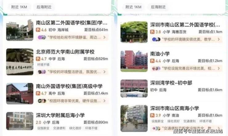 项目周边有北师大附小,南山外国语学府学校,南二外学府中心南油小学,深圳大学附属后海学校,北师范大学附中,深圳湾学校等