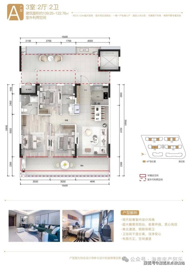 ·一路之隔超级地中海、世界音乐厅、琼港合作示范区;近享三亚国际免税城、超级万象城、太古里、Hello Kitty主题乐园、宽窄巷子,汇集国际一流商业配套、购物、餐饮、文娱等顶级设施应有尽有;