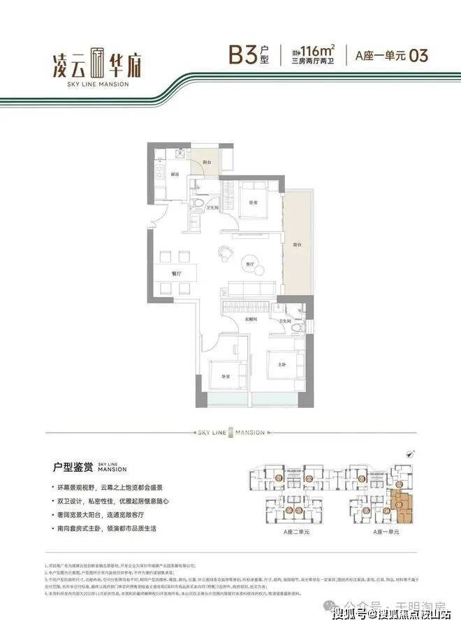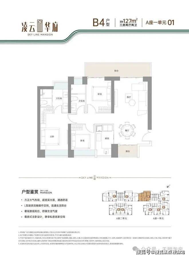 所有户型均采用方正布局、双阳台设计,层高约3.15米,近1:1.2梯户比,彰显奢阔尺度。物业特邀国际五大行之一仲量联行(JLL)担任咨询顾问,以国际标准定制高品质服务。