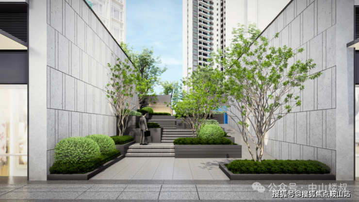 ?中心轴线水景——约350㎡中心轴线水景,精致对景叠级水景,树阵结合灌木层打造自然式林下空间,漫步于镜面水景之上的林下步道,营造自然体验。