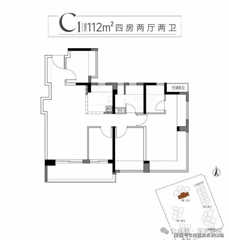 C1户型为竖厅设计,大阳台连通到次卧,主卧270度大飘窗,使用率高
