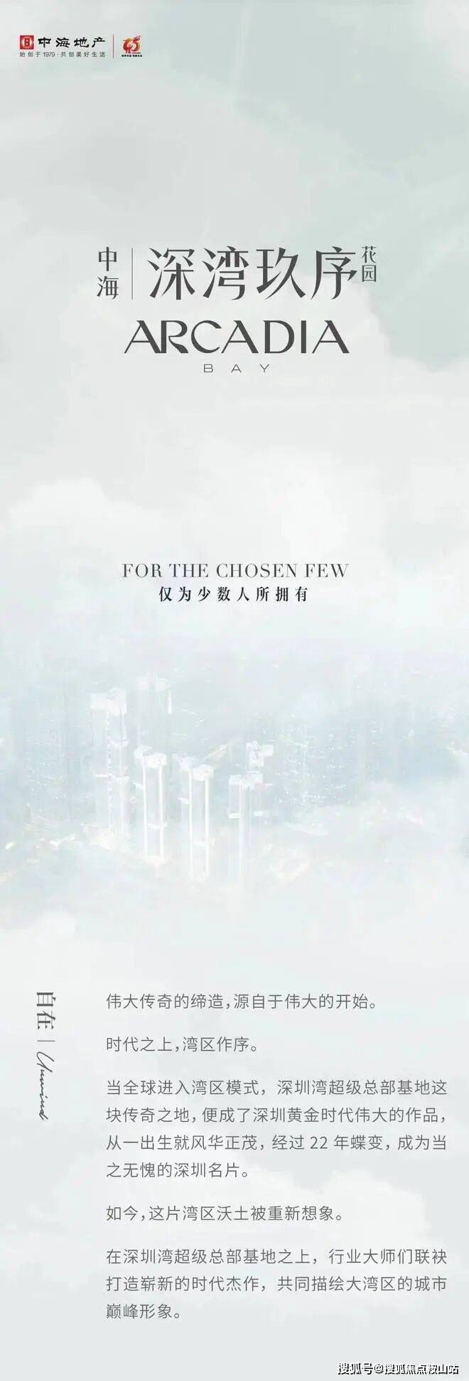 深圳中海深湾玖序(又称中海深超总项目)地处南山区深圳湾超级总部基地,由深圳市启超房地产开发有限公司打造,是一座高端住宅项目。