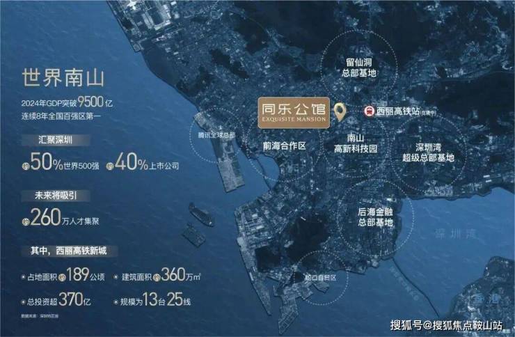 同乐公馆,位于深圳南山区南头街道同乐社区中山园路229号,地处南山区与宝安区交界处,毗邻中山园路与南坪快速交汇处北侧。项目占据"南山科创芯"核心位置,是深圳湾-科技园-西丽科创中轴的关键节点,直线距离仅3公里范围内覆盖科技园、前海自贸区及留仙洞总部基地三大产业核心区。西丽高铁新城(在建中,预计2028年投入使用)的规划进一步提升了区位价值,该枢纽将形成"4高铁+2城际+4地铁"的超级换乘网络,规模超过深圳北站,成为全国最大的轨道交通换乘站之一。