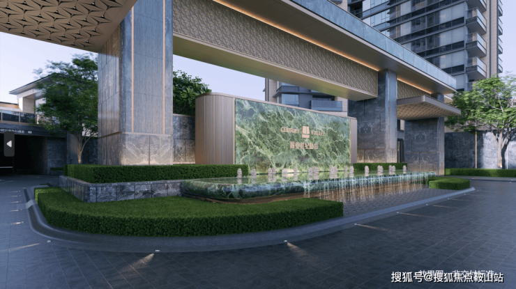 ②门仪:约70m宽奢阔主入口,绿奢石照壁、天然花岗岩门头