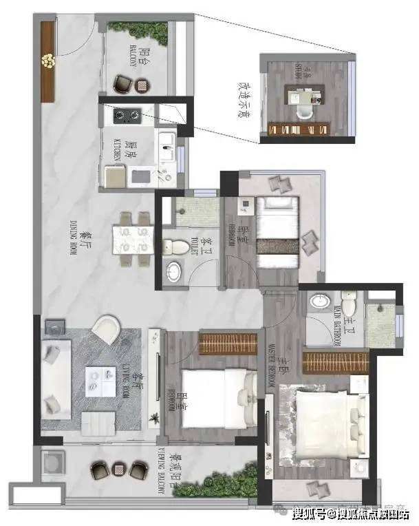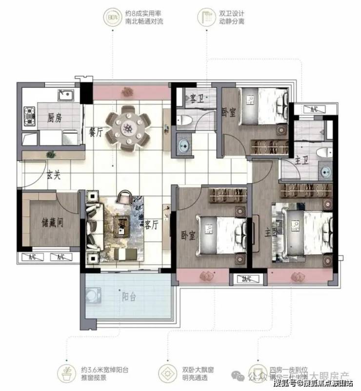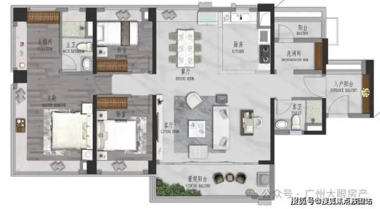 景观大阳台连通次卧--双套房设计,三代同堂更从容