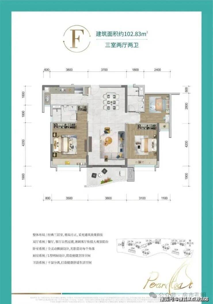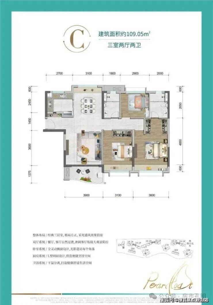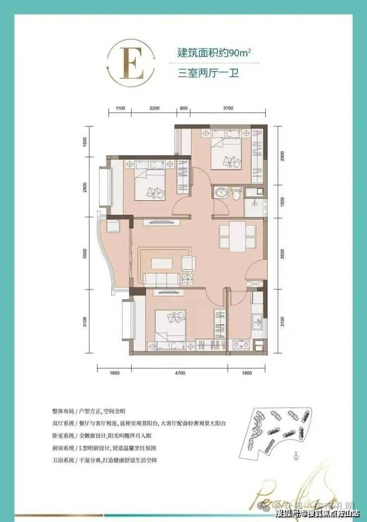 【建筑面积段】约90-110㎡ 三房