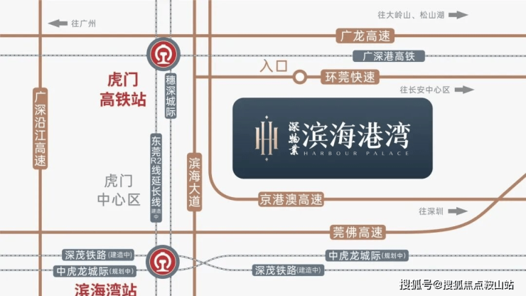 项目直线距离虎门高铁站仅约2.8公里,雄踞虎门TOD核心辐射区,扼守滨海湾大道都市创新轴线上,串联滨海湾、虎门新中心等核心区。