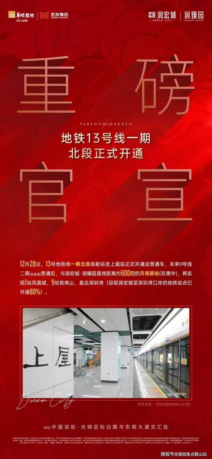 润宏城位于深圳市光明区凤凰街道13号线二期月亮路站旁,由华润置地和宏发集团联合打造,整体规划约382万㎡超大体量城市综合体,集轨道交通、优质教育、城市公园、创新产业、品质居住于一体,打造“宜居、宜业、宜游”都市生态标杆大城。