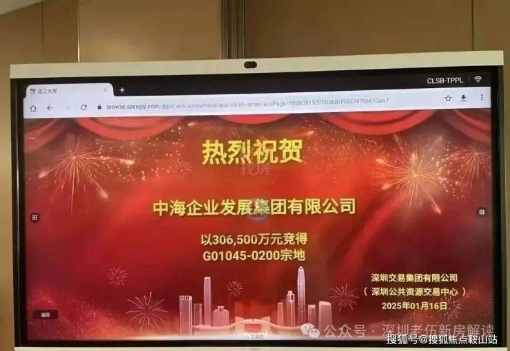该地块原是在2025年1月16日深圳第一轮集中土拍中,由中海集团竞得的G01045-0200宗地,成交价30.65亿元,楼面价达到了2.96万/㎡。
