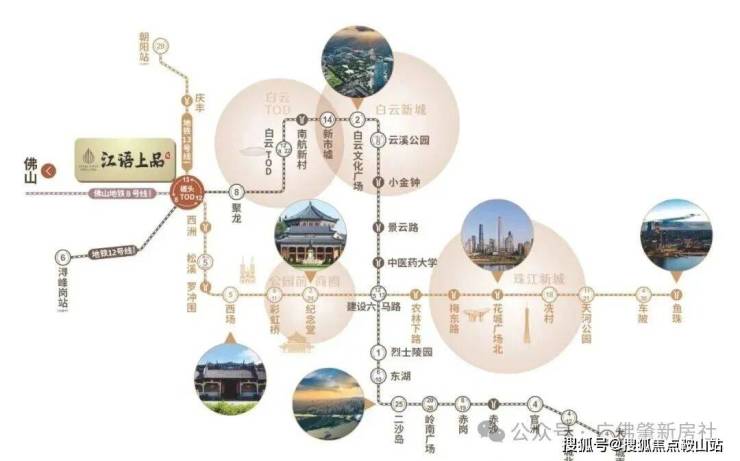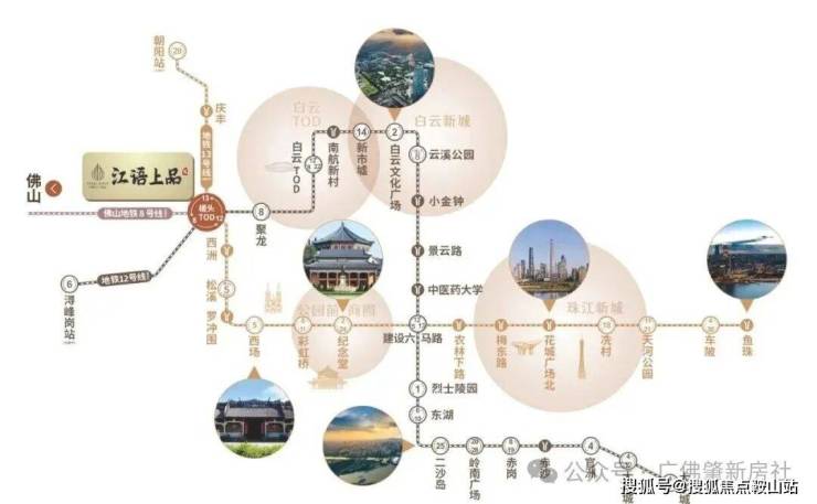 广州12号线、13号线、佛山8号线交汇,贯穿广州东西人文经济大动脉,广州五大区域核心版块无缝直达。