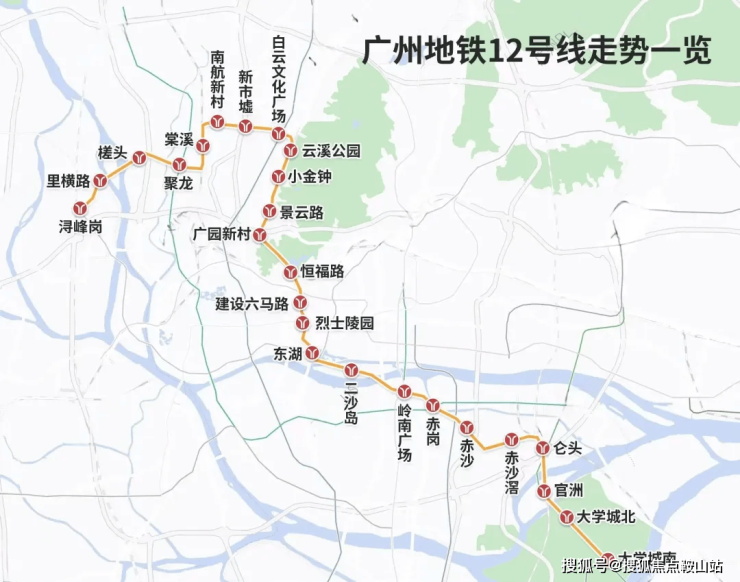 12号线(预计2025年通车)-广州换乘之王,广州市第一条无人驾驶地铁线路,与十数条轨道线无缝换乘,共经过白云文化广场、烈士陵园、二沙岛、赤沙等17个换乘站,可直达大学城,连通白云、越秀、海珠、番禺四大区域。