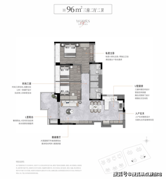 主推产品:约85-94-96-110㎡ 3-4房;