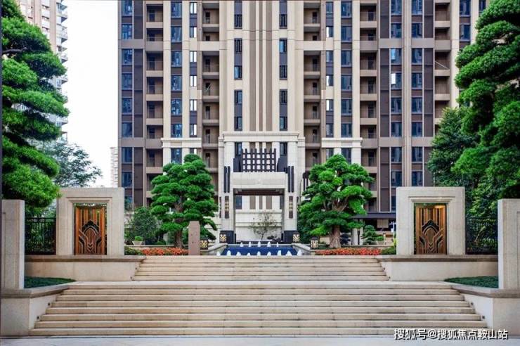33米宽大气主入口采用干挂名贵石材,简约而不简单。入口两侧引进4棵超百年树龄古罗汉松,非凡气度彰显高贵风范。