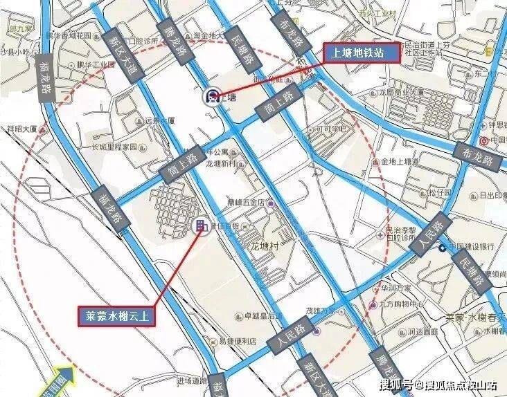 项目位于红山及上塘片区交界处,地块属于上塘。项目西、西南、西北侧以自然山体及水库景观为主,其它方向相临近的是上塘片区和红山片区。