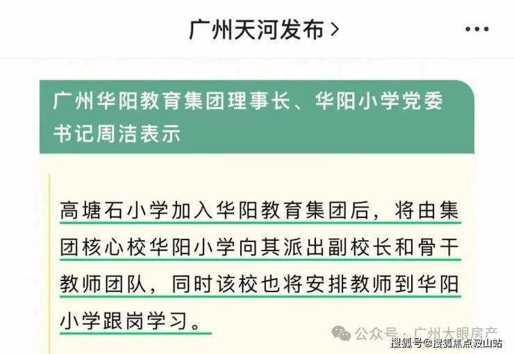 天河政府官微已在去年官宣该校加入华阳教育集团,并由原华阳小学向其派出副校长和骨干教师团队进驻,相当于拥有纯净“华阳系”血统。