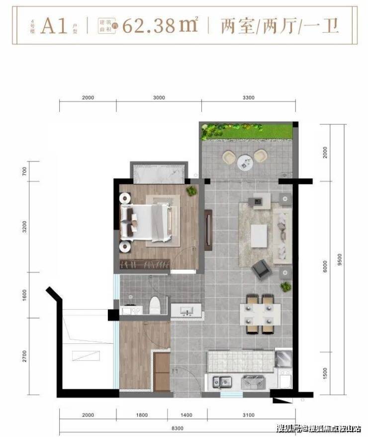 ✨4楼 A1户型约62㎡精致两房两厅一卫