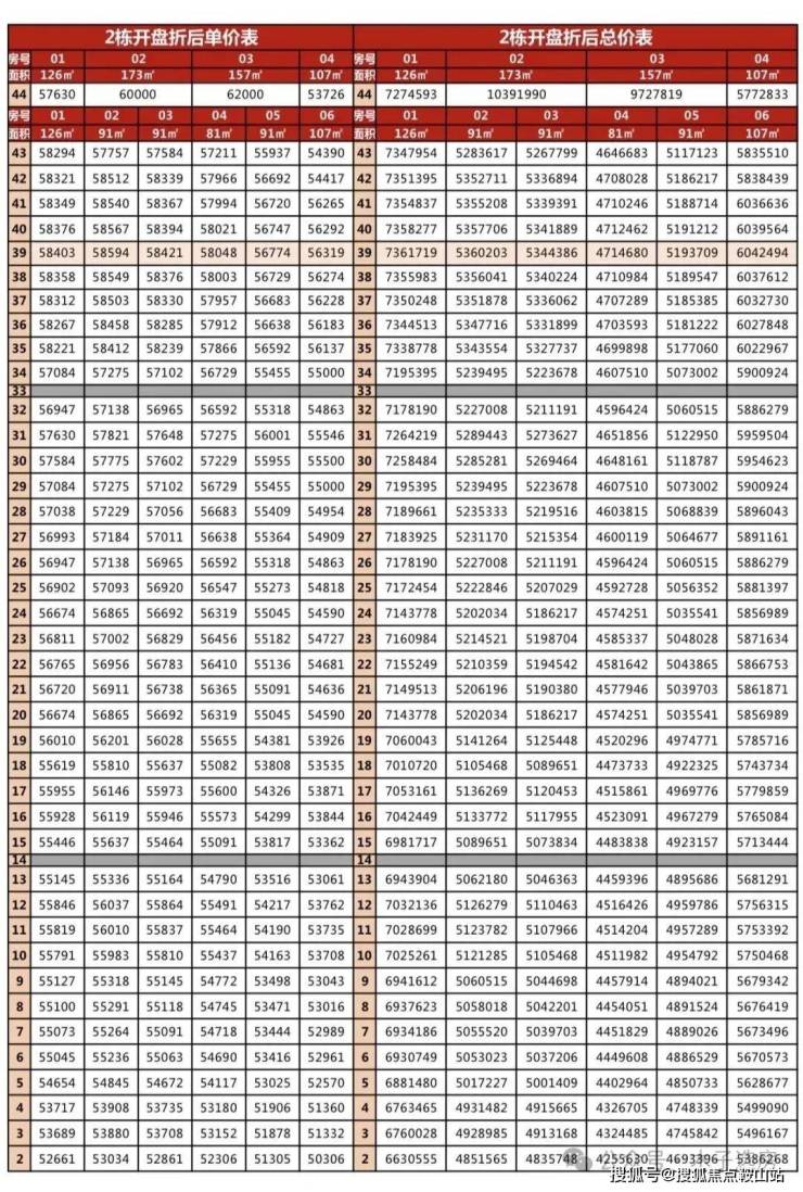 126㎡:折后单价约5.26-5.85万/㎡,总价约663-737w