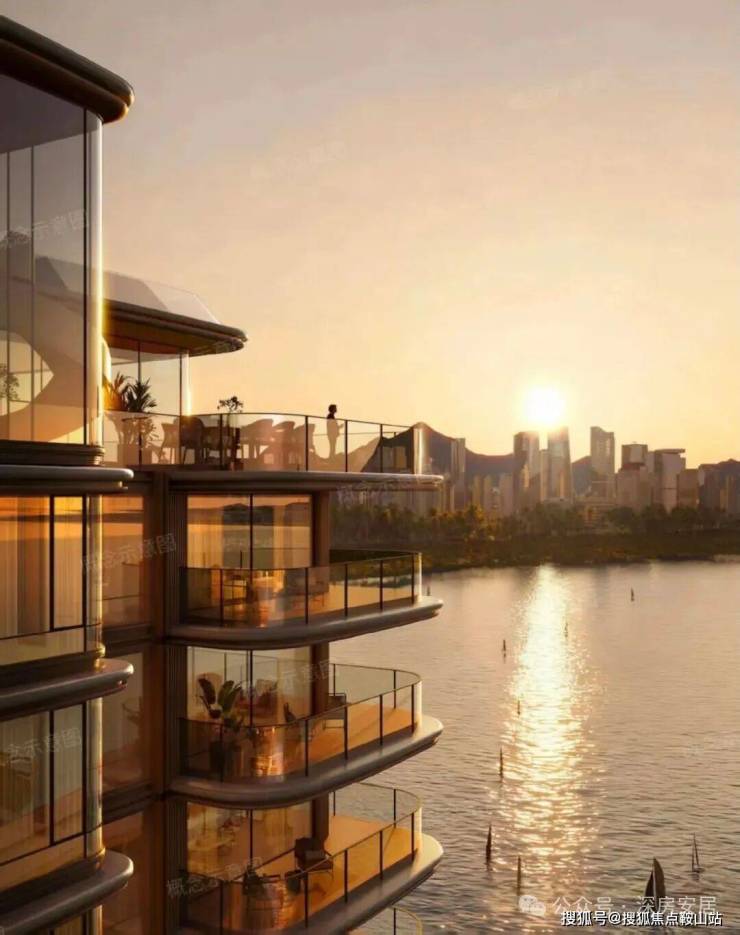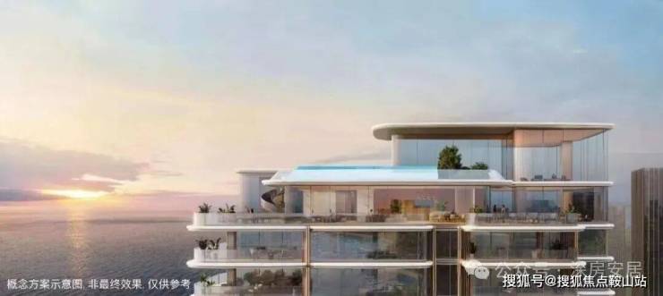 从效果图来看,户户阳台尺度豪奢,看向欢乐港湾海景及前海城市景观,顶复还带泳池,十分豪奢。