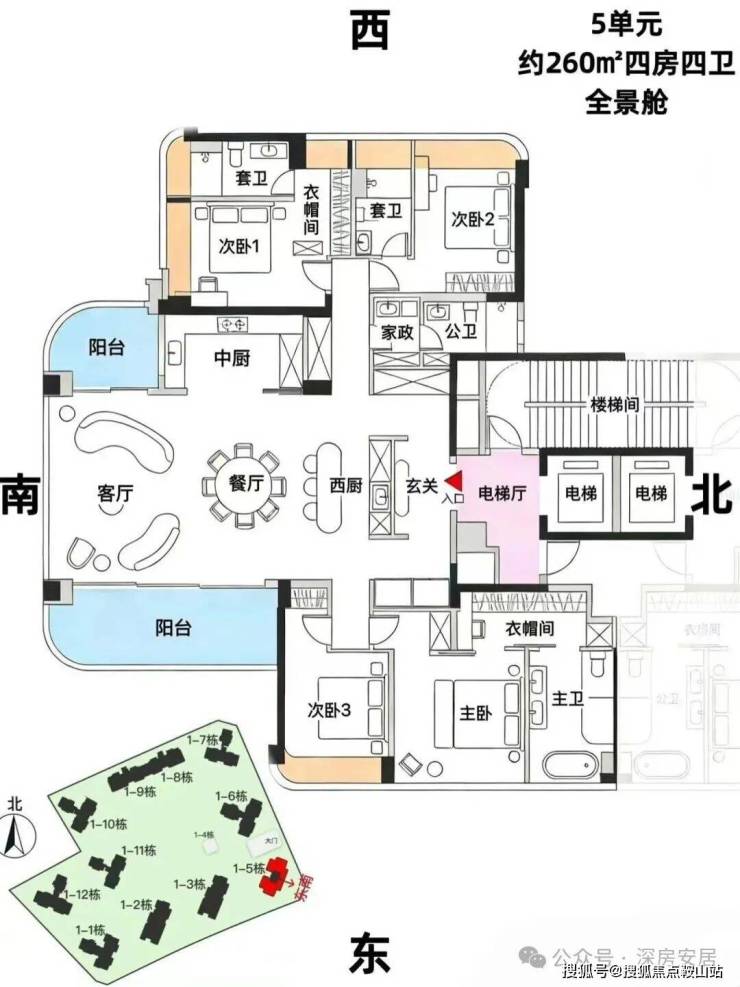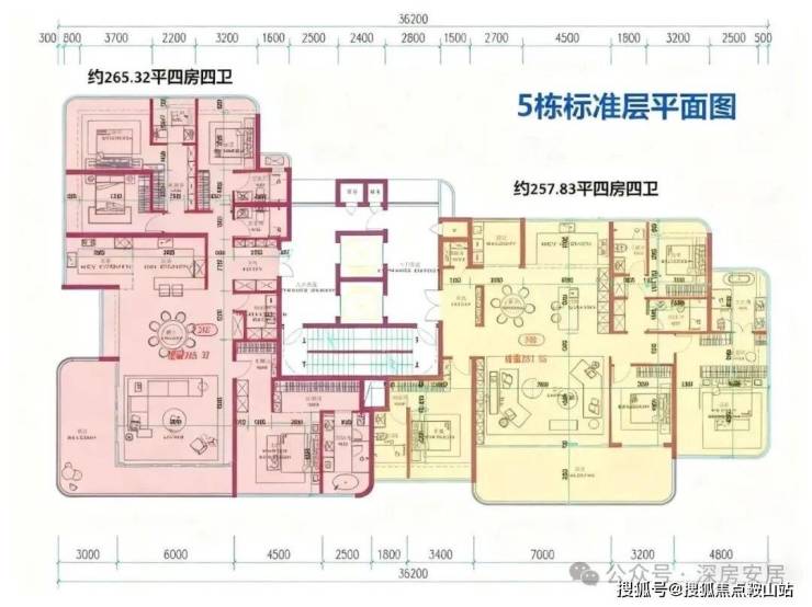 5单元:21层,2梯2户, 建面约260㎡,还有1套500㎡顶复