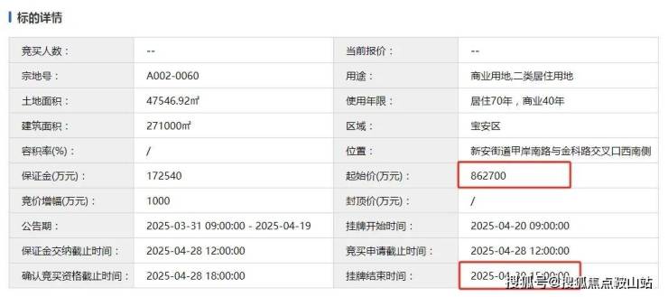 观潮府也就是宝中A002-0108宗地,俗称南街坊地块,在2025年8月15日深圳集中供地中,由招商+华润集团联合拍下,竞得价格86.4亿元,溢价率34.8%,楼面价59586元/m²,建安成本大概在9.53万/平,目前传出的风声是销售均价会在11-12万/平,预计起步总价在1500多万起。