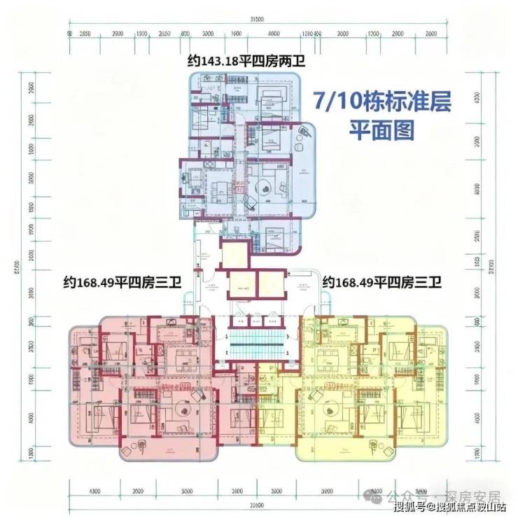 7单元:23层,3梯3户, 建面约143-168㎡