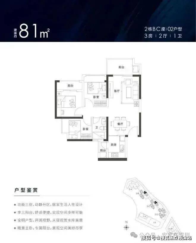 项目定位为“刚需首置物业”,主打中小户型住宅及公寓产品,住宅面积段为79-129㎡,公寓面积47-62㎡,设计强调高实用率与功能分区合理性。其核心优势包括准现房交付(部分楼栋2023年竣工)、立体园林景观、交通及旧改规划红利等。