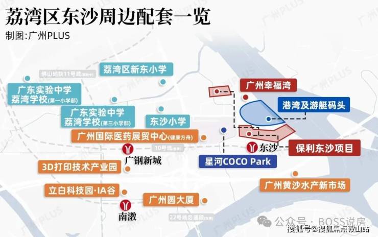 地铁:周边10、11、22号线(在建中)三地铁交汇,其中距离10号线东沙站仅约600米,串联天河区、白云区、越秀区、荔湾区和海珠区,连接广州火车站、广州东站等大型交通枢纽,便捷出行;
