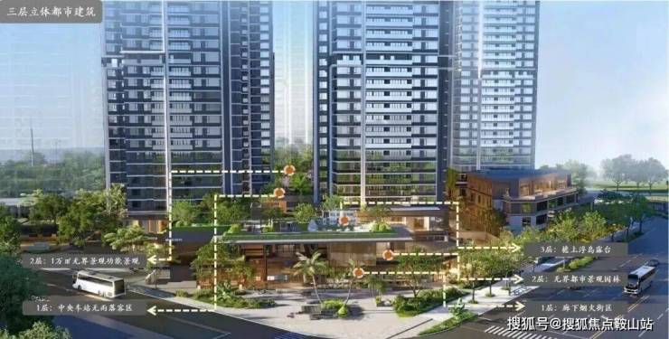光明首创的”抬高式檐上浮岛花园露台“,打造约1000㎡业主私享花园露台,位于商业街区顶层,约1000㎡的中央车站,社区主入口悬浮立体式入户门院,仪式感归家动线。