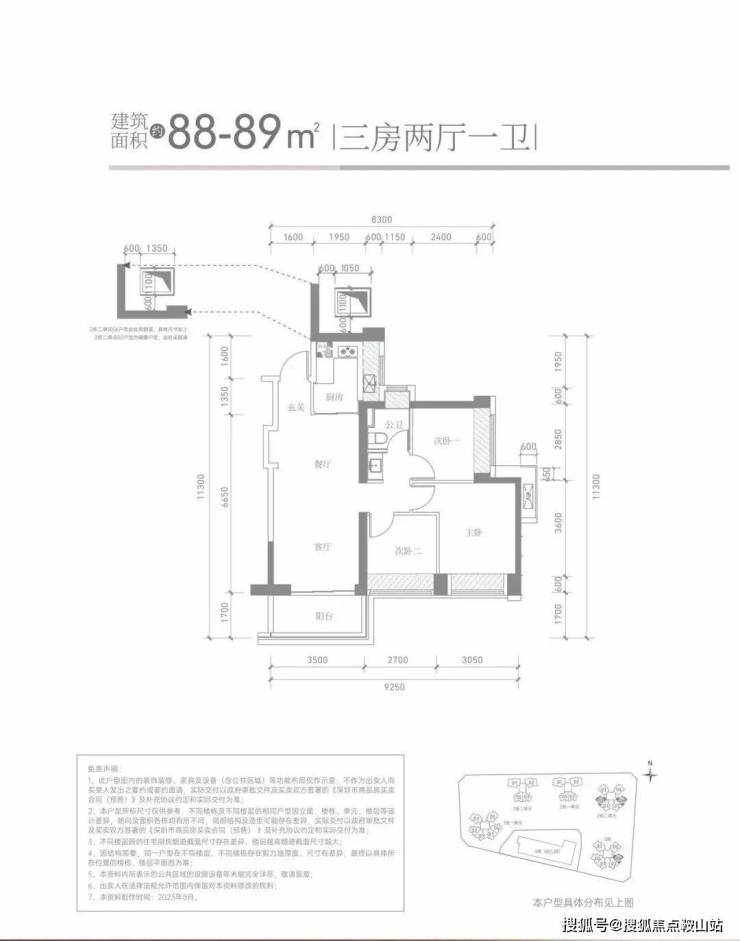 89㎡的三房一卫:竖厅设计,动静分区明确,客厅进深大,主卧及次卧面积较为开阔。