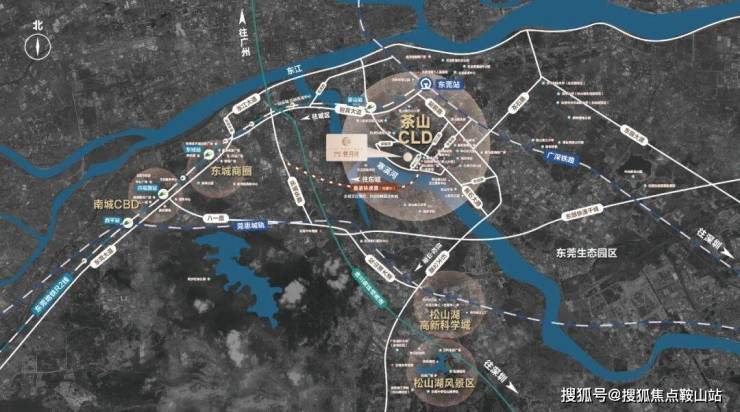茶山全镇主要由6大片区组成,其中城镇中心区是核心发展片区,这里汇聚了茶山的行政中心、文体教育等重要资源,莞民投·和昌莞月湾就位于中心区的西侧。