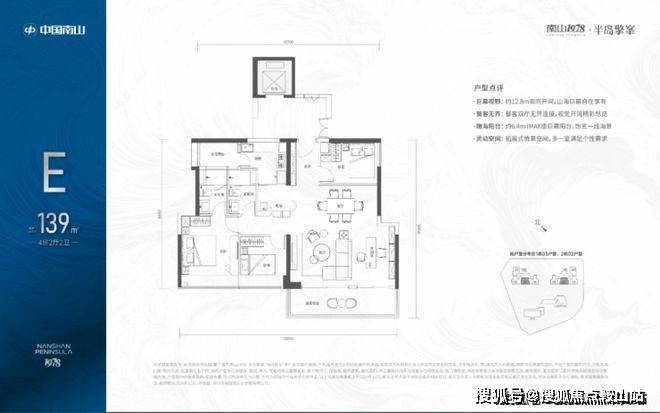 139㎡的4房2厅2卫,1栋03/2栋02高区户型,电梯入户送独立公区,设计的是竖厅类双龙抱珠格局,四开间朝南,主卧大套间设计,有1个多功能间可以做书房,6.4米长观景大阳台,L型厨房带1个生活阳台,卫生间干湿分离,得房率:72.07%(不含赠送),西南朝向。