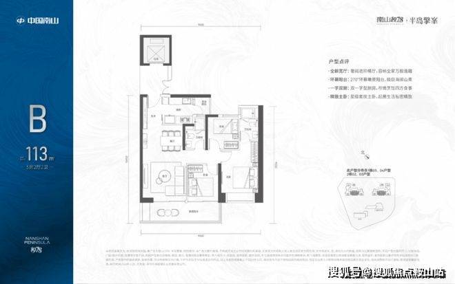 113㎡的3房2厅2卫,设计的是竖厅格局,电梯入户送独立公区,LDKB一体化设计,动静分区,三开间朝南,客厅连接次卧出超大观景阳台,主卧大套间设计,二字型厨房带1个小生活阳台,卫生间干湿分离,得房率:72.07%(不含赠送),西南朝向。