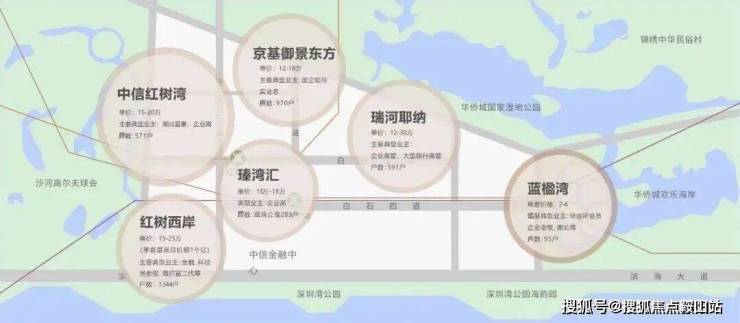 与高净值人士为邻:地处传统豪宅片区,一公里半径内有红树西岸、中信红树湾、京基御景东方、瑞河耶纳等高端住宅社区,单价超12万元。业主涵盖金融、科技各行业企业主及高管,拥有大量高净值人群以及政企资源