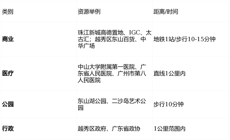 医疗:中山一院(三甲TOP1)、广东省人民医院等步行范围覆盖,全龄健康保障。