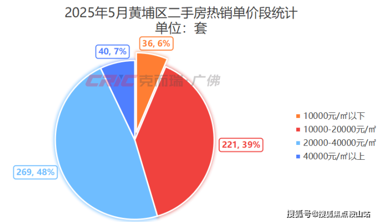 在成交结构上,克而瑞数据监测显示,5月黄埔二手房成交主力单价段为2-4万元/㎡,成交269套,占比达到48%,环比上月增长4%。