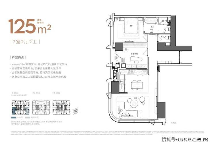 太子湾•泓玺】总高194米,共1栋,分为顶高低三个区域,低区9-38层4梯8户,面积为88-95-115-125㎡;高区39-48层4梯6户,面积为88-115-226㎡;顶层49-50层4梯4户,面积为216-226㎡。