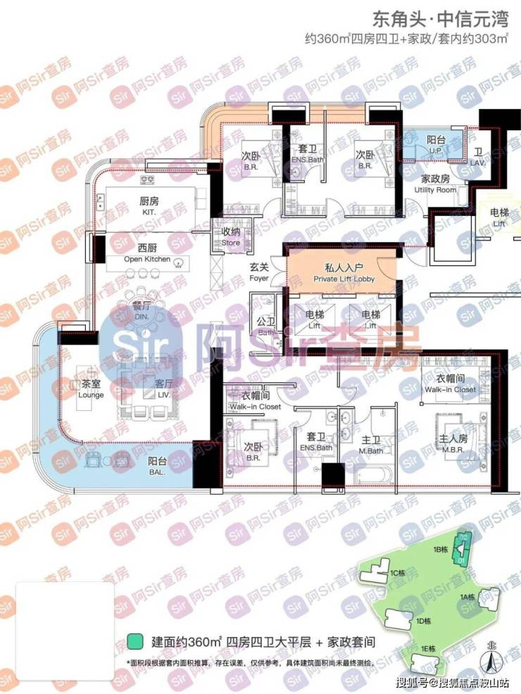 1D/E栋:49层/43层,3梯2户,约285㎡大平层