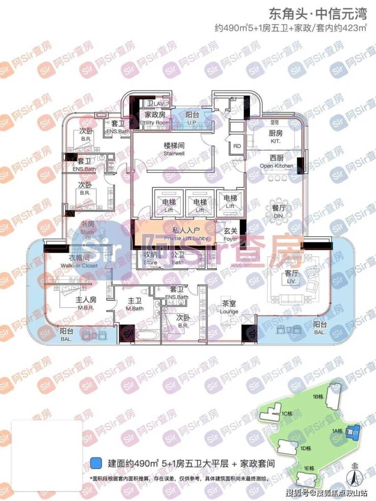495㎡5+1房3厅5卫户型作为旗舰产品,呈现顶级豪宅尺度。