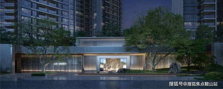 入口50米横向面宽,近6米的高跌水景墙与双层门楼让回家有了一份尊贵与隐奢;随着动线穿林,见山,伴水,来到模仿山石色调与铜色金属融合打造的酒店式大堂,一路草木清香、青石铺地、水系流动,自然的隐奢之美扑面而来。