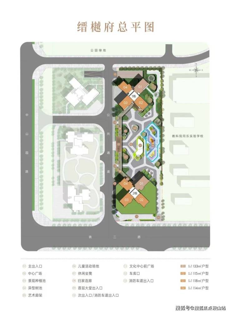 项目户型包括114㎡4房2厅1卫、115㎡4房2厅2卫、118㎡4房2厅2卫和133㎡5房2厅2卫。