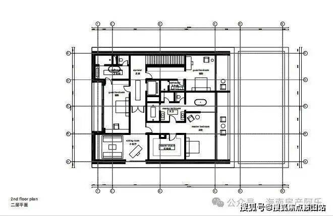 主卧位于二层, 近150平方米起居室,奢华大气,前面海背靠山,自然能量萦绕。