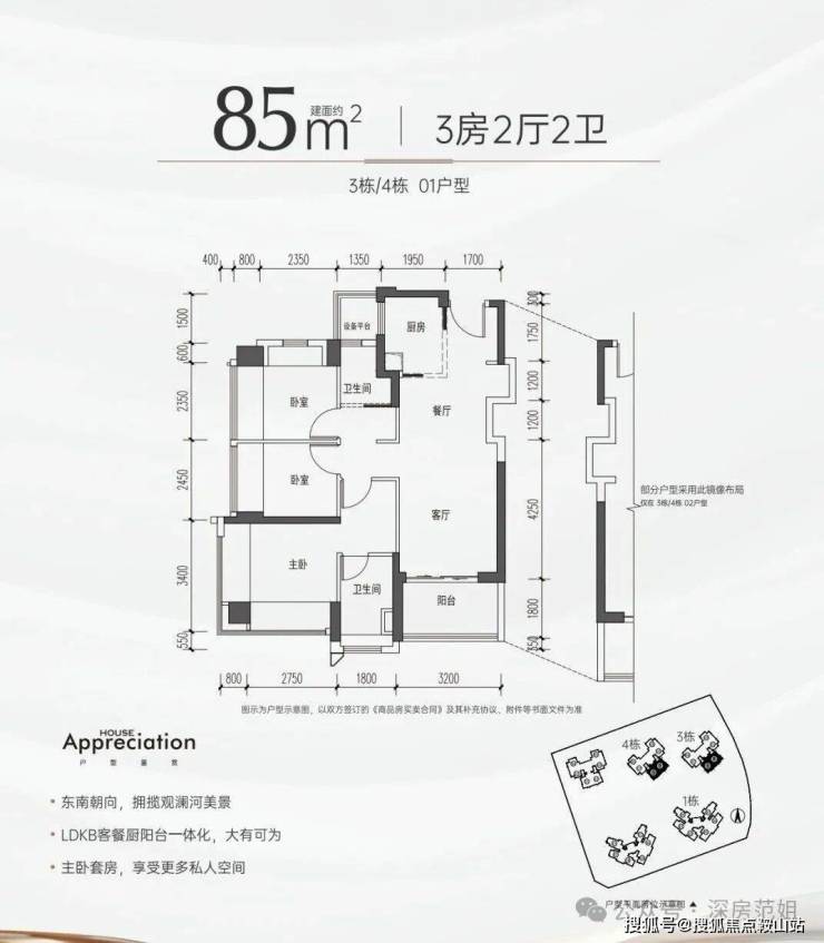 建面约85㎡3房2厅2卫