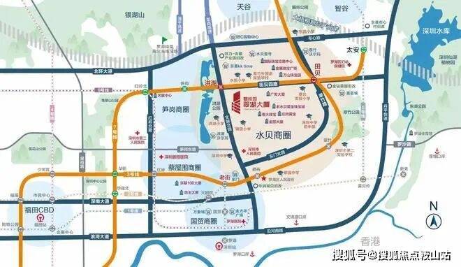 往北接驳北环大道,往南接驳深南大道、滨河大道,方便通达福田、南山。